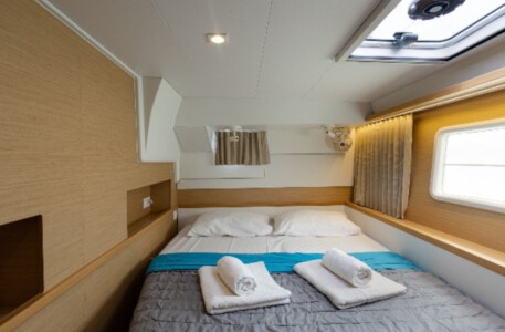 Wir segeln auf einem großzügigen Katamaran, der viel Platz, Stabilität und Komfort bietet.